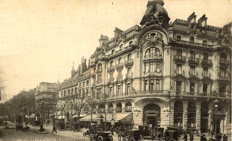 All photos from wikimedia except for the Cafe Riche, which is from http://paris1900.lartnouveau.com and Sarah Bernhardt, which is from http://shakespeare.emory.edu/postcarddisplay.cfm?cardid=472.